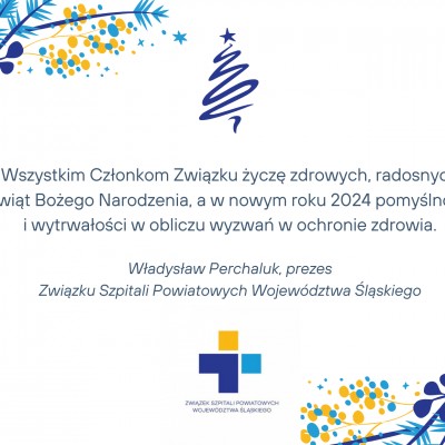 Wszystkim Członkom Związku życzę zdrowych, radosnych Świąt Bożego Narodzenia, a w nowym roku 2024 pomyślności i wytrwałości w obliczu wyzwań w ochronie zdrowia.